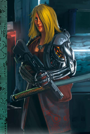 Jeune samouraï des rues polonaise, elle nous a rencontré alors qu'elle était garde du corps de von Schencker Junior. La rencontre ayant été plutôt brutale (bien que qualifiée “d'accrochage” par Niddon), elle a fait appel à d'anciens contacts pour s'en remettre.