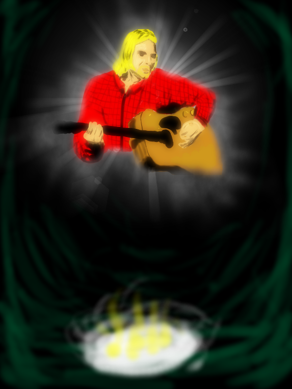 Devant moi, mon esprit mentor se manifestait sous la forme de Kurt Cobain, m'indiquant d'un mouvement de tête l'éclatante lueur s'ouvrant sous mon être. Je m'y plongeais entier, sentant mon essence se purifier avec chaque note. Les minutes, puis les heures, s'écoulèrent, sublimant ce que j'étais pour m'amener à une épiphanie faisant pâlir ma morne vie par comparaison.